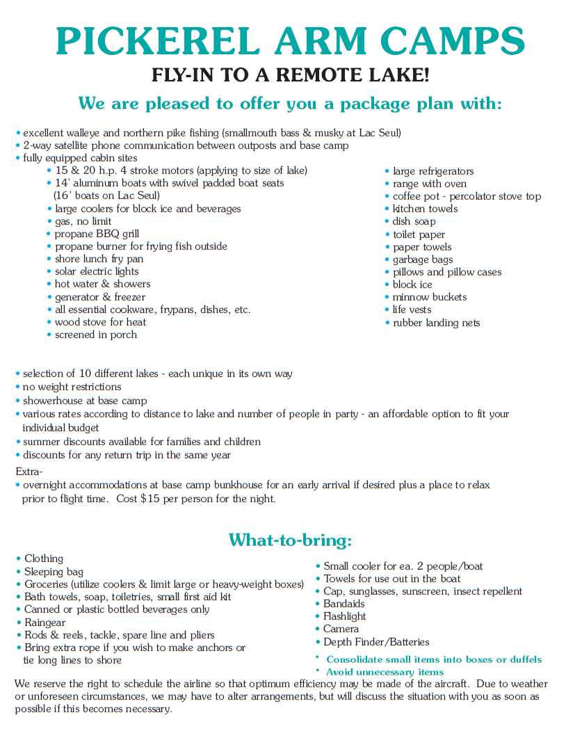 Pickerel Arm Camps DRIVE-IN BASE CAMP 2026 RATES (US FUNDS) Click the rates image for a larger version or click here |